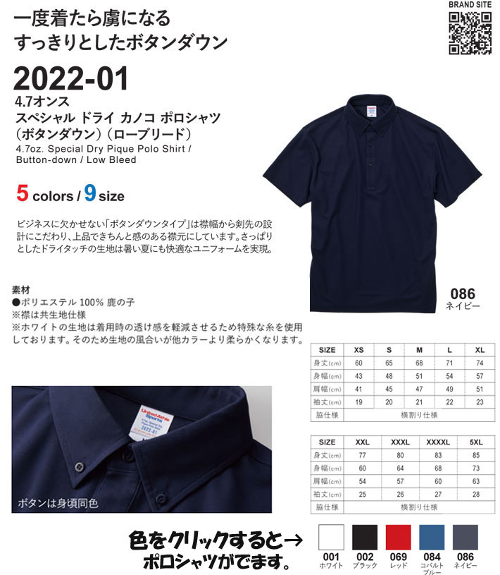 2022-01 4.7オンス SPドライカノコボタンダウンポロシャツ